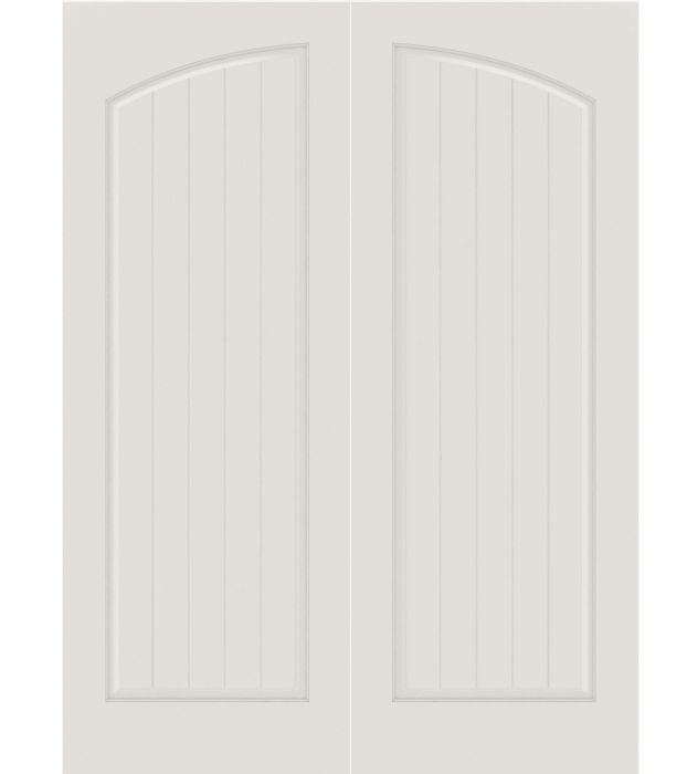 WDMA 20x80 Door (1ft8in by 6ft8in) Interior Barn Smooth SV1060 MDF PLANK/V-GROOVE 1 Panel Arch Panel Double Door