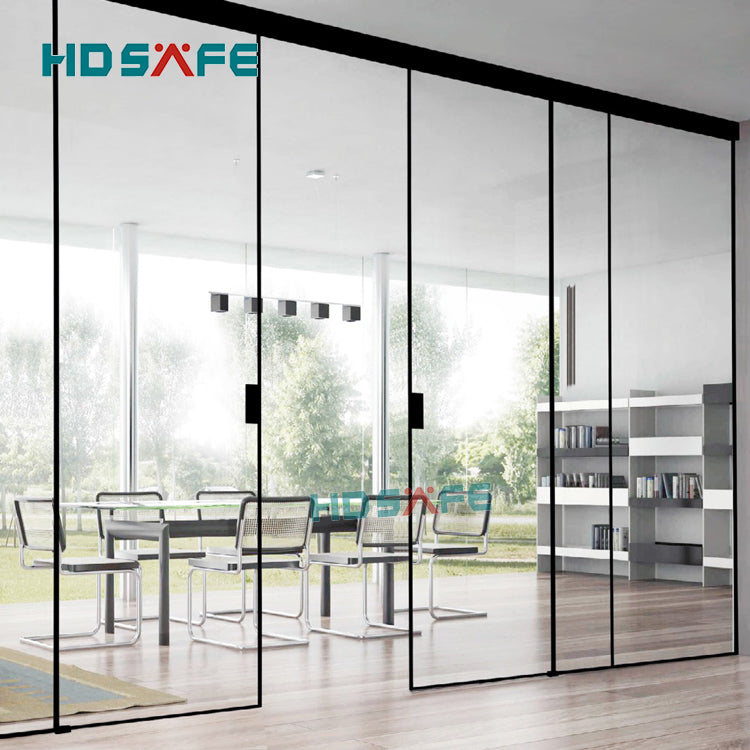 customized tempered glass soft closing black metal narrow frame synchronized sliding door on China WDMA