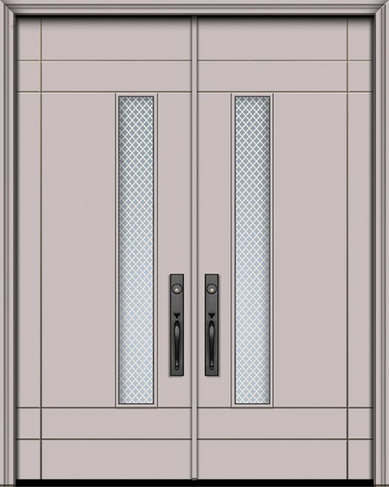 WDMA 84x96 Door (7ft by 8ft) Exterior Smooth 42in x 96in Double Santa Barbara Solid Contemporary Door w/Metal Grid Attributes Table