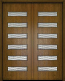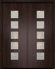 WDMA 84x96 Door (7ft by 8ft) Exterior Mahogany 42in x 96in Double Newport Contemporary Door w/Metal Grid