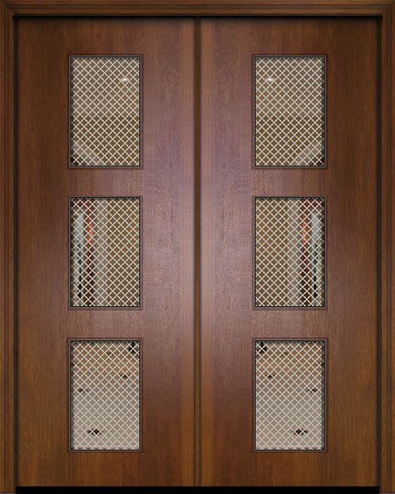 WDMA 84x96 Door (7ft by 8ft) Exterior Mahogany 42in x 96in Double Newport Contemporary Door w/Metal Grid Attributes Table