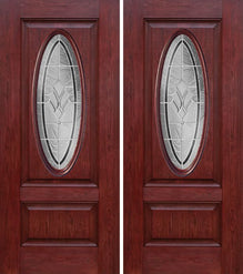WDMA 60x80 Door (5ft by 6ft8in) Exterior Cherry Oval Three Panel Double Entry Door BT Glass Attributes Table