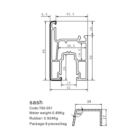 Product Description Best optional 60 sliding system sash window PVC profiles Best optional 60 sliding system sash window PVC profiles Code:T60-051 Meter weight:0.89Kg Rubber:0.924Kg Package:8 pieces/bag Product Uses Best optional 60 sliding system sash window PVC profiles Best optional 60 sliding system sash...