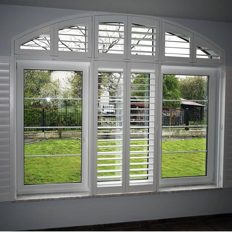 Product Description Round Circle Shape 63.5 mm Louver Basswood Window Plantation Shutters About shutters: plantation shutter is an investment in your home. For centuries, shutters have been prized as fine window furniture and a testament to a homeowner's discerning style and sophistication. Shutters not only provide design, privacy...