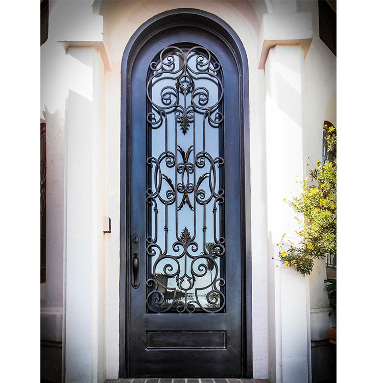 China supplier fashion single wrought iron exterior entry french doors Product Description Type Arch/Square/single/eyebrow wrought iron door as your required Product Material Wrought Iron\steel Size/Color/Glass Customized Lock and handle Be optional. The pre-drilled holes are compatible with most hardware. Opening Way Left/Right Hand Inswing;Left/Right Hand Outswing Weather Stripping...