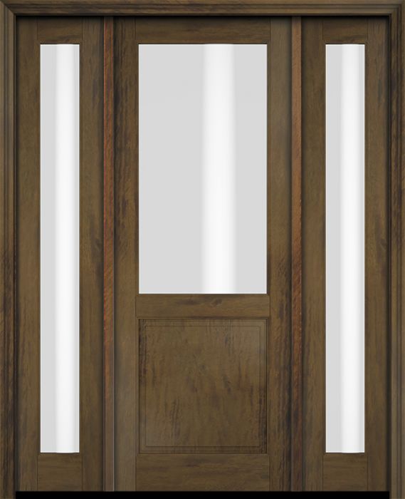 WDMA 46x84 Door (3ft10in by 7ft) Exterior Swing Mahogany 1/2 Lite Single Entry Door Full Sidelights