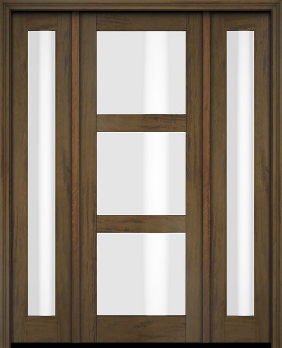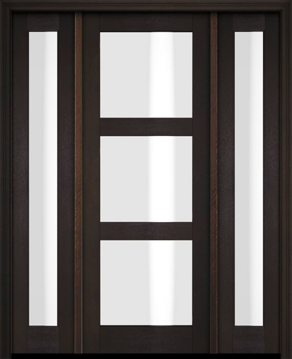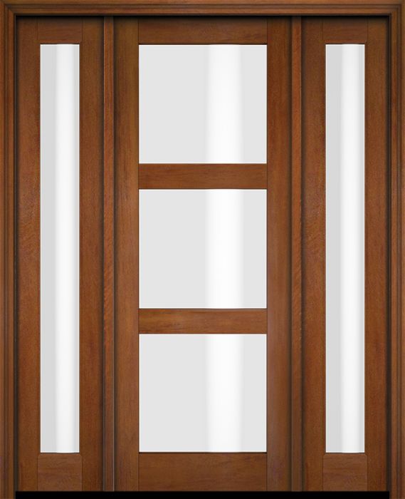 WDMA 52x96 Door (4ft4in by 8ft) Exterior Swing Mahogany Modern 3 Lite Shaker Single Entry Door Sidelights