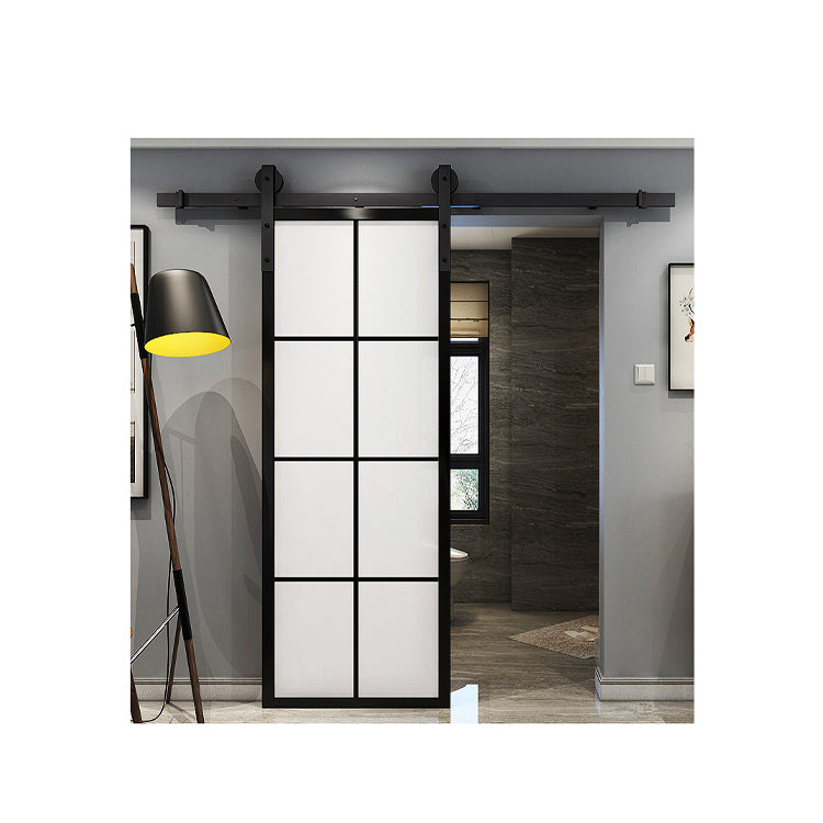 China WDMA 36 in x 84 in Mountain French Steel and Clear Full Lite Glass Sliding Barn Door with Hardware Kit and Left Hand Pull