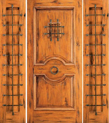 WDMA 66x80 Door (5ft6in by 6ft8in) Exterior Knotty Alder Door with Two Sidelights Front Speakeasy