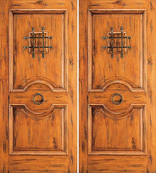 WDMA 84x80 Door (7ft by 6ft8in) Exterior Knotty Alder Double Door 2 Panel Speakeasy Straps