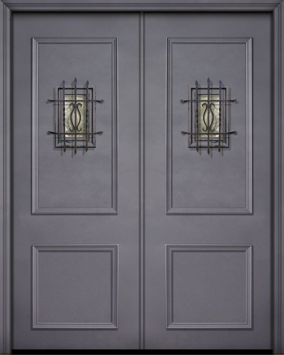 WDMA 64x96 Door (5ft4in by 8ft) Exterior 96in ThermaPlus Steel 2 Panel Double Door with Speakeasy