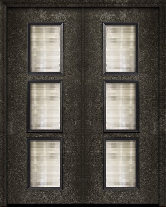 WDMA 64x96 Door (5ft4in by 8ft) Exterior 96in ThermaPlus Steel Newport Contemporary Double Door w/Textured Glass