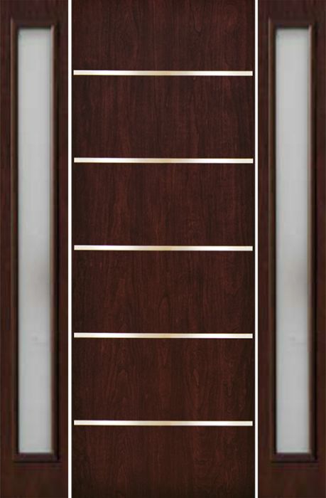 WDMA 66x96 Door (5ft6in by 8ft) Exterior Cherry 96in Contemporary Stainless Steel Bars Single Fiberglass Entry Door Sidelights FC875SS