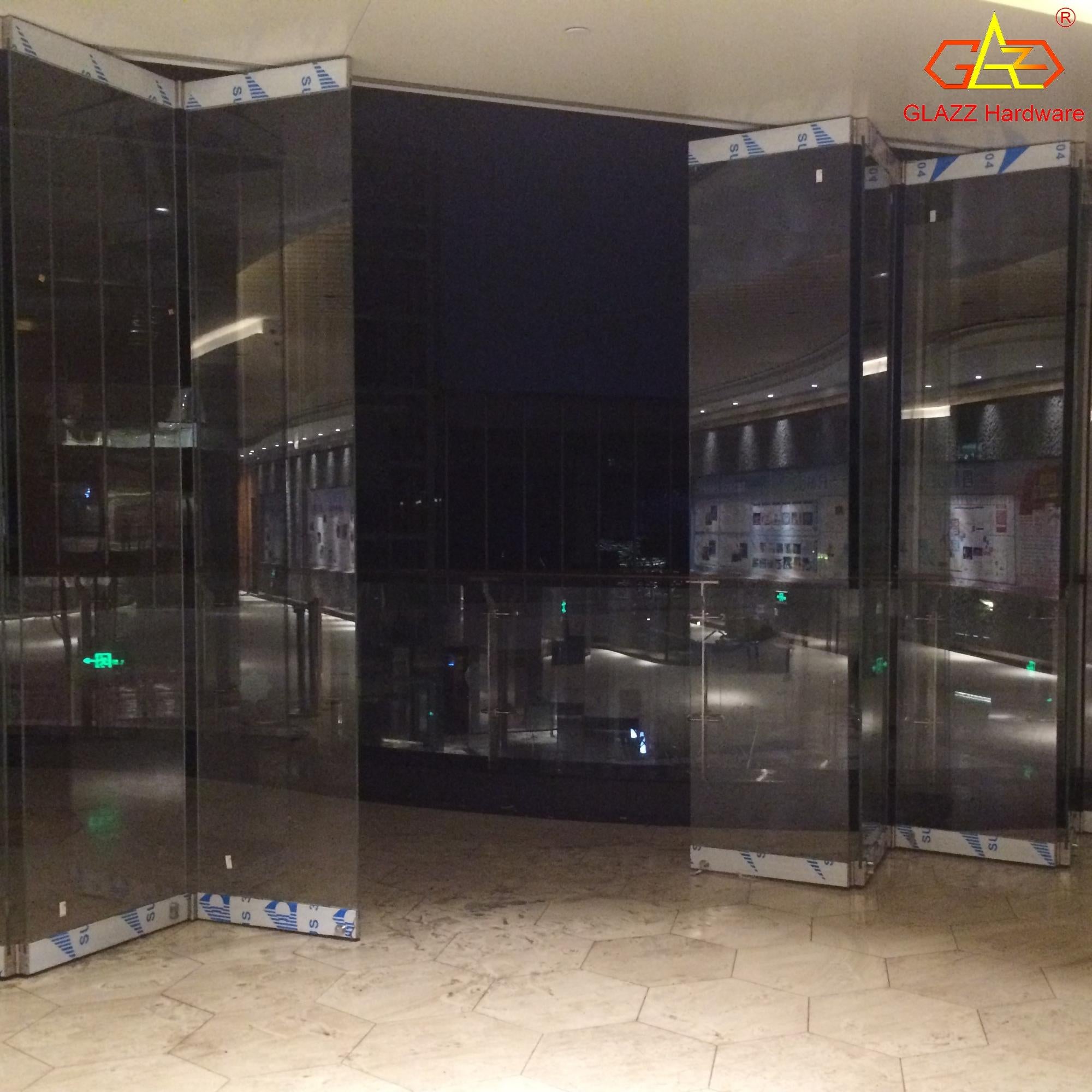 Product Description Customized Hight quality stainless steel sliding folding door for interer shops Model No.: GS1000A Frameless folding sliding door Max. Door leaf size: 100*300mm Glass T (transmittance)>80%, highlighted bright visual Folding sliding door can realize to maximize the opening space Without glass hole & easy installation Brand Name Glazz...