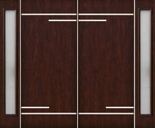 WDMA 100x80 Door (8ft4in by 6ft8in) Exterior Cherry Contemporary Stainless Steel Bars Double Fiberglass Entry Door Sidelights FC673SS