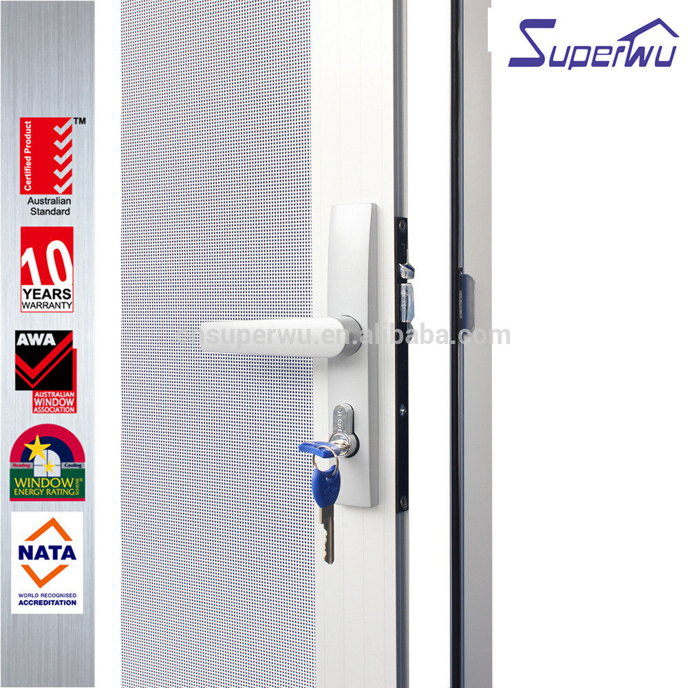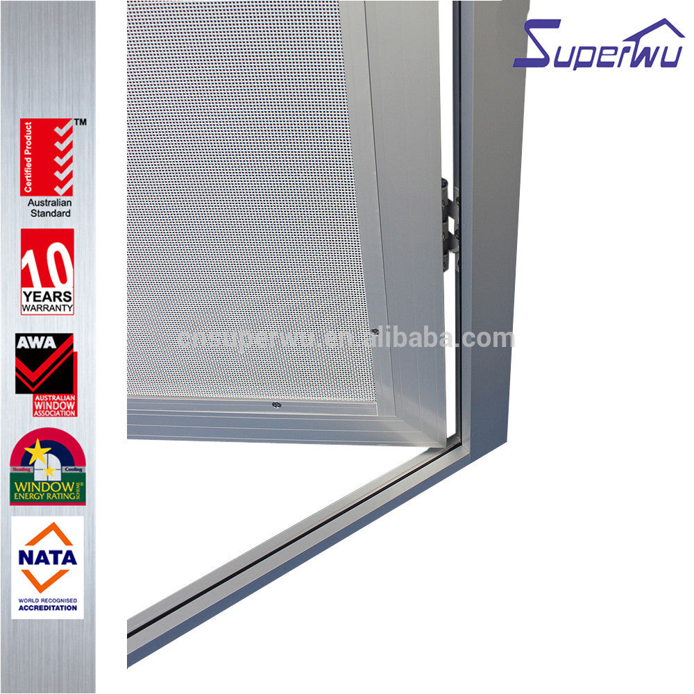 Silvery aluminum stainless steel mesh hinged door as security door Product Description Click for more informations!!! Features l SP86 SP100 SP130 SP150 series available for housing,residential,commercial and luxury villa l Grill and fly screen available l Flyscreen with taking off easily and cleaning l With timber reveal, easy installation l Fin flat angle for double...