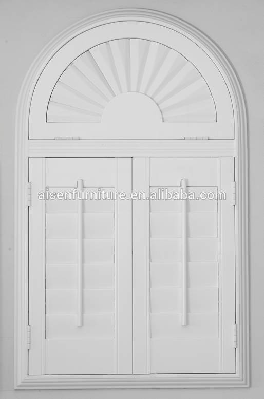Faux wood louver arch window plantation shutter on China WDMA for UK