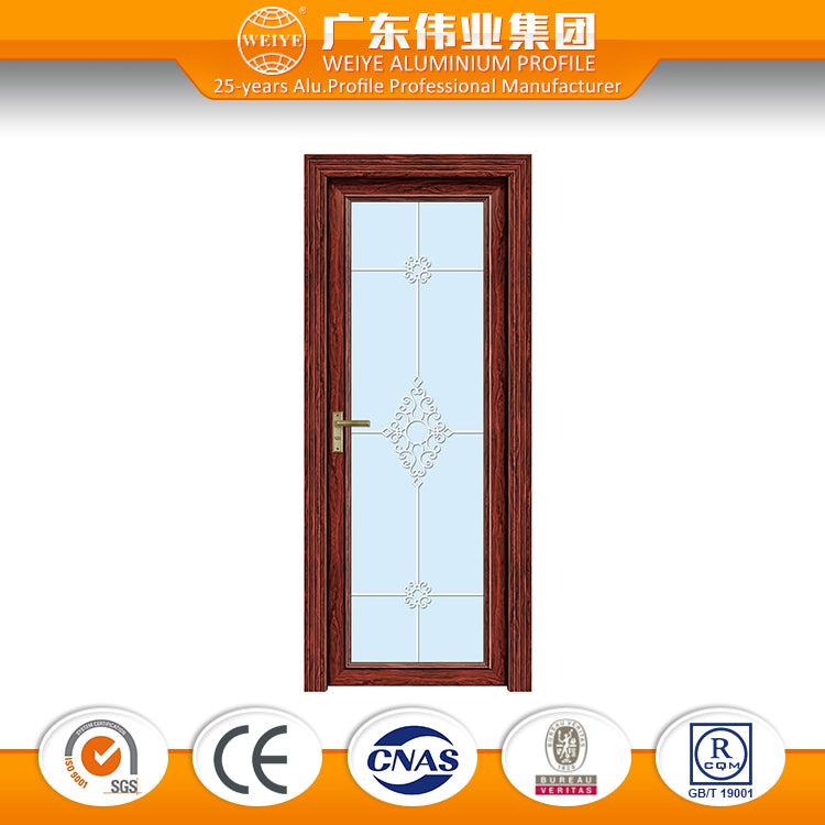 Aluminium alloy frame tempered modern interior bathroom wooden door with elegant glass design on China WDMA