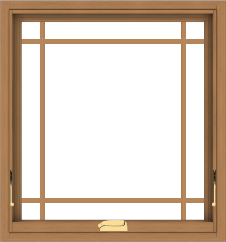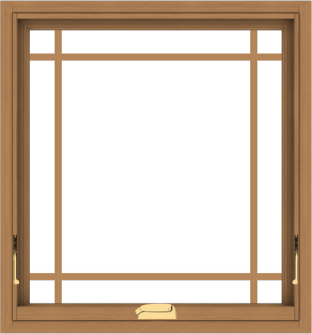 WDMA 28x30 (27.5 x 29.5 inch) Oak Wood Dark Brown Bronze Aluminum Crank out Awning Window with Colonial Grids