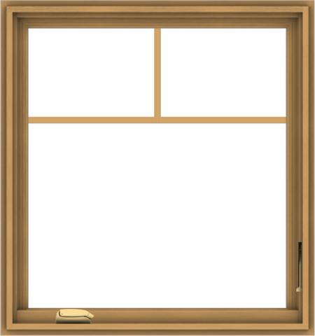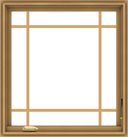 Please write your review of WDMA 30x32 (29.5 x 31.5 inch) Pine Wood Dark Grey Aluminum Crank out Casement Window with Prairie Grilles.