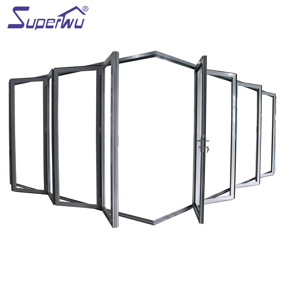 Product Details Garden and balcony used exterior luxury Aluminum Corner glass folding Door Series: Commercial System Name/Model: PVC SP70T Folding Door Standard/Certificate: Comply With AS2047/CSA Glass Standard: Comply With AS2208/IGCC Structural glazing: Comply With AS1288 Brand: Superhouse & Superwu Color choice: Customized:matt...