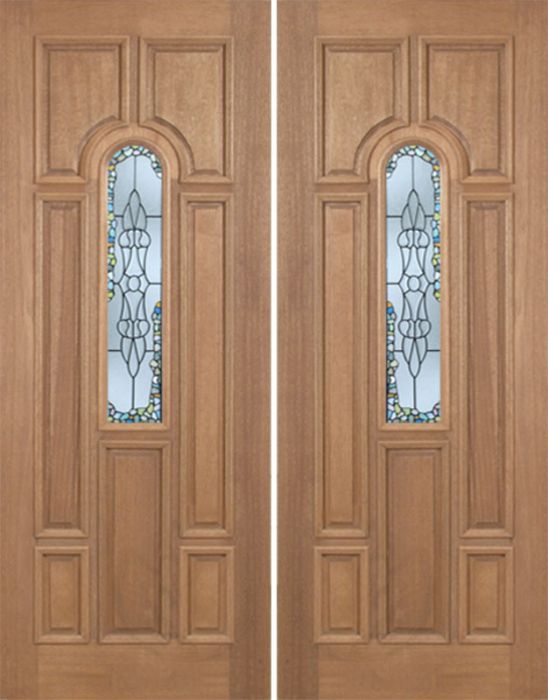 WDMA 72x96 Door (6ft by 8ft) Exterior Mahogany Revis Double Door w/ Tiffany Glass - 8ft Tall