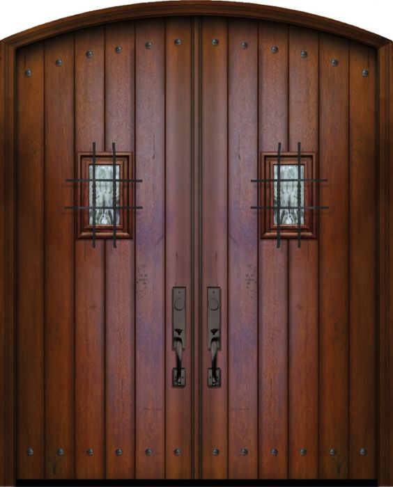 WDMA 72x96 Door (6ft by 8ft) Exterior Mahogany 96in Double Plank Arch Top Door with Speakeasy / Clavos Attributes Table