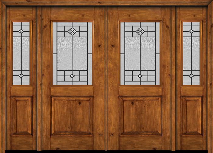 WDMA 88x80 Door (7ft4in by 6ft8in) Exterior Cherry Alder Rustic Plain Panel 1/2 Lite Double Entry Door Sidelights Beaufort Glass