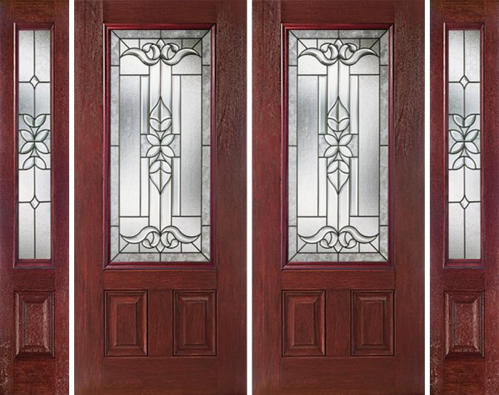 WDMA 88x80 Door (7ft4in by 6ft8in) Exterior Cherry 3/4 Lite Two Panel Double Entry Door Sidelights CD Glass Attributes Table